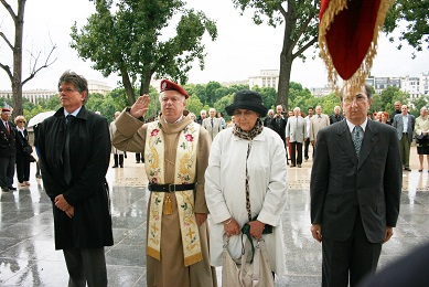 Beaucoup de fidèles se pressaient cependant, pour rendre ce modeste hommage. Et c’est avec toujours la même émotion que Madame Ducos-Ader, Jean-Felix Vallat, Denis Fadda et un aumônier parachutiste (dont je ne connais pas le nom...), ont déposé une gerbe devant les colonnes chargées de milliers de noms, civils et militaires, morts pour la France.