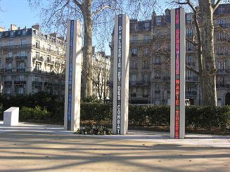 Recueillement et dépôt de gerbes devant les colonnes du Quai Branly