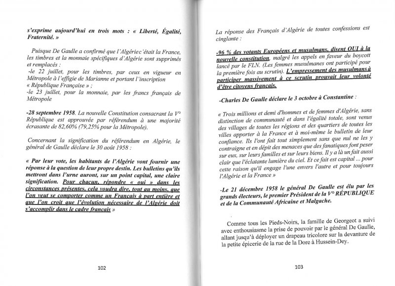 Le diabolique futur premier Président de la V° République, alla même jusqu’à dire lors de la campagne référendaire que pour les habitants des Départements Français d’Algérie, répondre « OUI » voudra dire que l’on veut se comporter comme un Français à part entière.