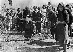 Anna, une grand-mère serbe, pleure sur les tombes de deux jumeaux creusées par des assaillants albanais à Grace, au Kosovo, en 1988. – Source : Serbianna.com