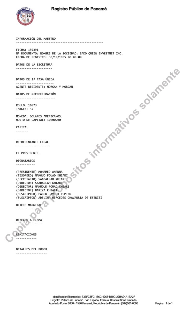Et bien non ! Queue-de-chie balai de crin, rien, nada, nibe. Le compte off-shore de cette dame n’intéresse personne. Etonnant, non ? Tout le monde se fout que Bariza Khiari soit " director " de la Bako Queen Investmet Inc.. Tout le monde se fout que la quasi totalité des membres dirigeants de cet entreprise panaméenne soit, comme par hasard ( voir mon précédent billet sur B. Khiari, ICI), des musulmans. Tout le monde se fout que cette société regroupant pas moins de 9 dirigeants ou membres n’ait en tout et pour tout comme capital que 10 000 dollars américains. C’est-y pas formidable ?