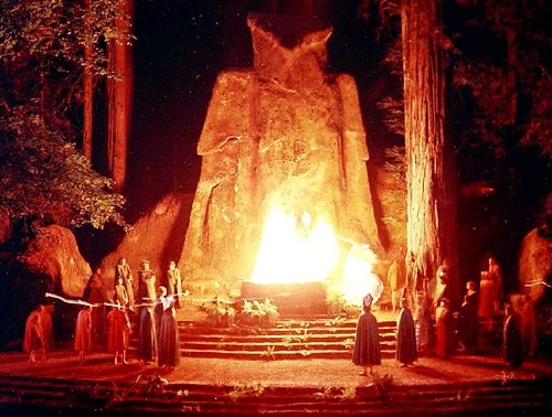 La photo du titre montre un rituel autour du Moloch ou du Hibou, du très select et assez secret Bohemian Club, mais pas si secret car même Wikipédia s’en fait l’écho avec un petit tacle de Bill Clinton au passage. Si vous ne connaissez pas le sujet, une recherche rapide vous donnera quelques éléments factuels et quelques noms.