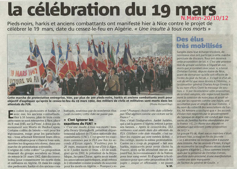 A visiter pour voir les photos et article de Presse de la manifestation à NICE du 20 octobre contre le futur vote du SENAT sur le 19 mars.