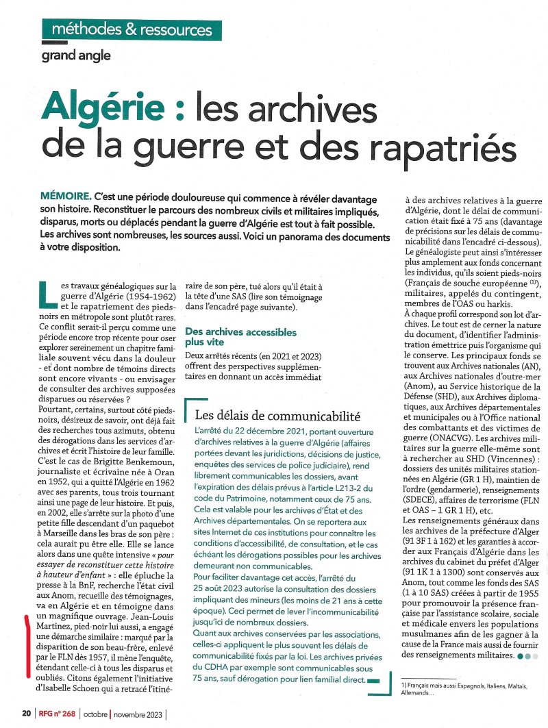 DANS LE N° 268 DE LA REVUE FRANÇAISE DE GÉNÉALOGIE