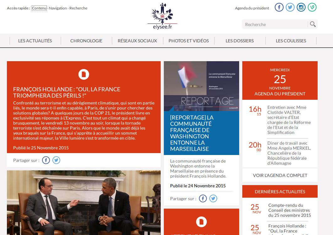 En tous cas au moment de cet article, il n’y a pas de drapeau français visible sur le site internet de l’Elysée soit http://www.elysee.fr